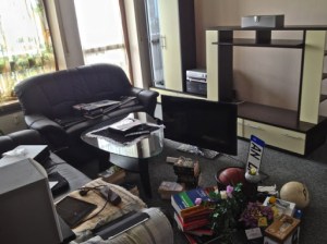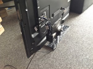 This is the result. As you can see you see nothing! The cable’s gone. All other cables are hidden on the floor behind the wall unit or other furniture. The chaos is still prevalent.