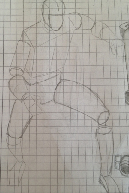 This tin-man alone looked pretty nice. After working out all the human features around the tin-man and erasing the lines of the skeleton this is the result.