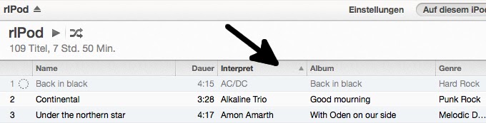 What actually happened is that with the restore of the firmware the default sorting of tracks on the device changed to be by their track-id. That means it sounded random to me but was in order for the Pod-thing. To solve my problem I opened the “What’s on my iPod” screen and clicked on the “Name” column to sort by artist name.