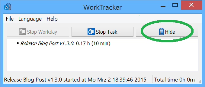 Lastly, I added the option to close the summary view. Previously, if you peaked at a snapshot of the data you had to live with the application window being expanded until you started or stopped a task. Now you can simply close the summary view again. In addition to that, there are less restrictions that would hinder you to open the summary view. Unless you have no active work day or are in the middle of entering a task’s name you can always show the summary.