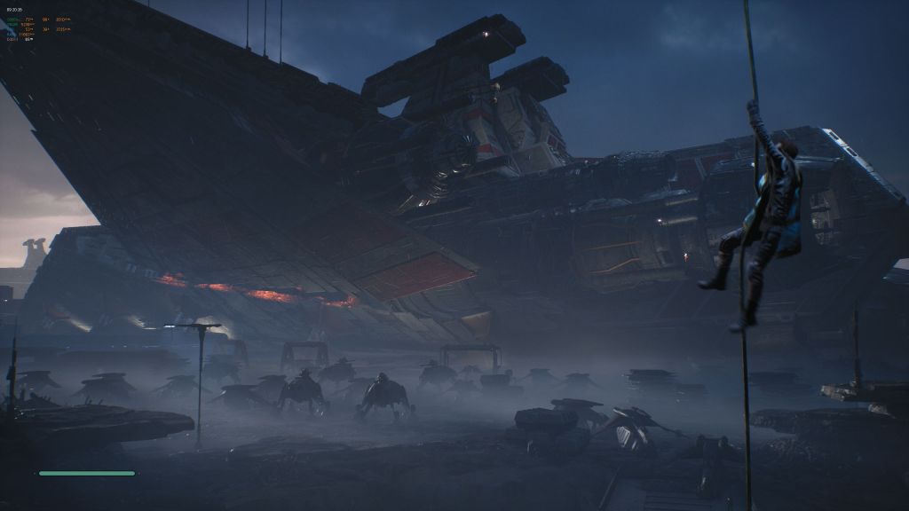 Now that I am done with gameplay let us discuss how Jedi Fall Order presents itself to you. I must say, this game looks and feels and sounds like Star Wars. The graphics quality is not the most spectacular one, but it is on point and it just looks Star Wars. In my opinion, you must enable Chromatic Aberration, Film Grain and Motion Blur to get the best effect. Then it really looks like Star Wars. It is not only about the technology though. The art design is spot on as well. Everything just looks right. The different planets, the enemies, the ships, the imperial star fighters and structures, the blaster shots, lightsabers, everything.