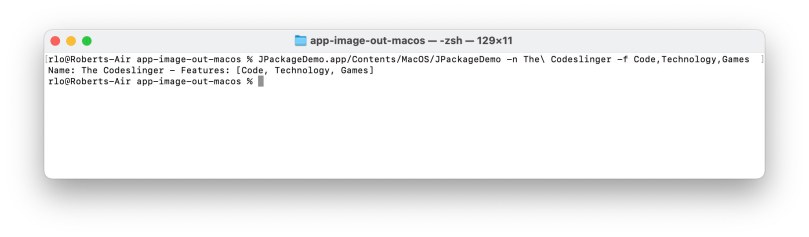 So, how does it work? How do I run the JPackageDemo.app on macOS? Well, if it were a GUI application, I would expect that double-clicking the app just works as intended. Since I was interested in a console utility, it is a bit more complicated. Ultimately, you run the executable that is hidden inside the APP folder.