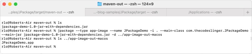 Except for the Linux package manager formats, I have tried them all. I will get to the results later. First, here is how you can use jpackage with a Fat-JAR.